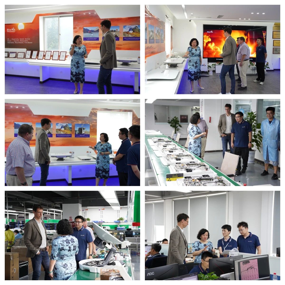 凭借这一认证,迅翼卫通(StarWin)在国际市场上的影响力进一步增强,吸引了众多欧洲客户前来公司访问,寻求合作。来访客户参观了产品展示厅、技术研发中心、总装调试车间以及室外测试区域,全面了解了我们公司在国内外取得的多项专利认证与荣誉。这些客户不仅对我们的技术实力表示高度认可,还对未来的合作表达了强烈的兴趣。