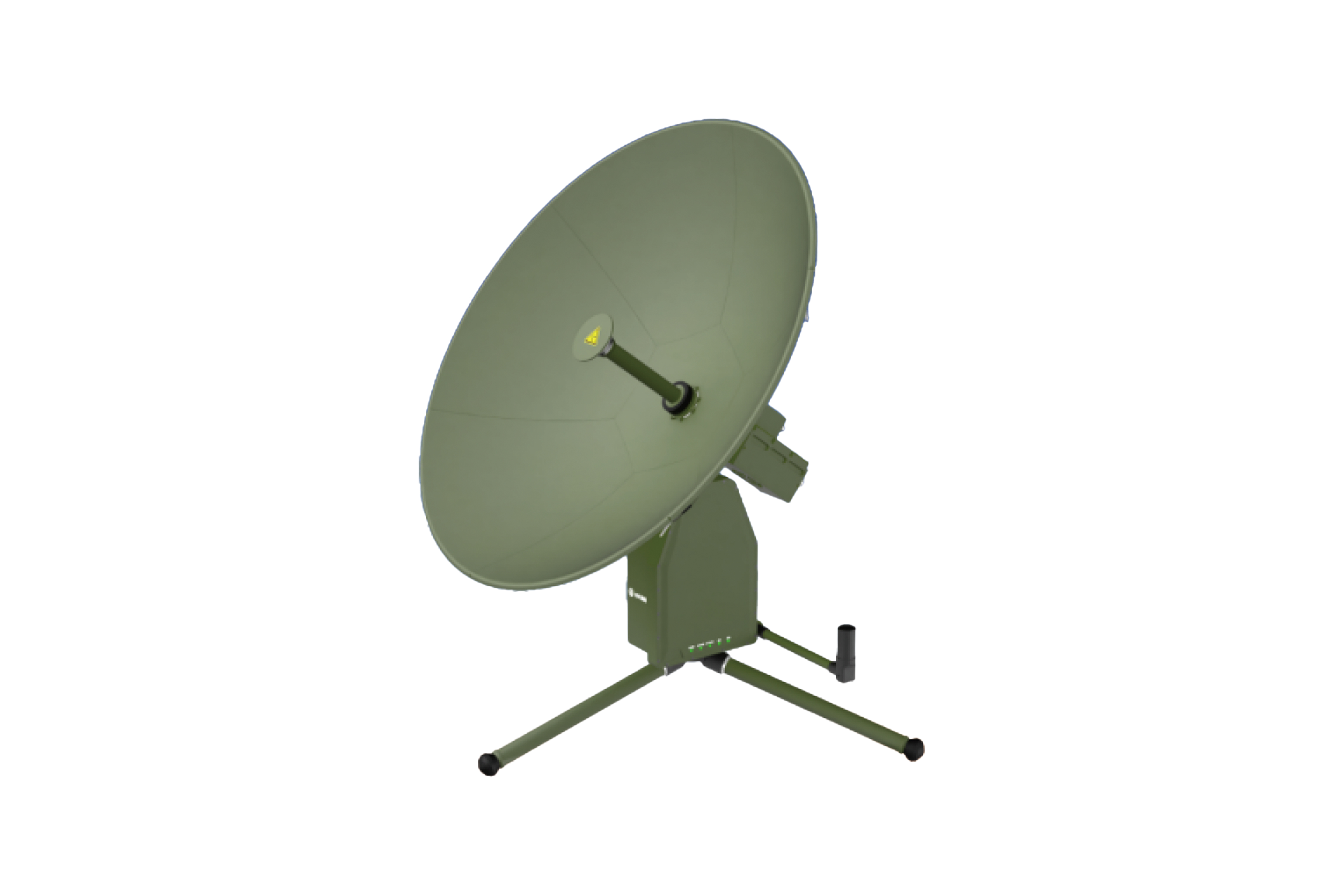 反射面采用单板结构,反射面抗冲击性能优越,在受到冲击后反射面可反弹复位,不影响反射面使用馈源采用帽形馈源设计,效率高,电性能满足ITU入网要求
